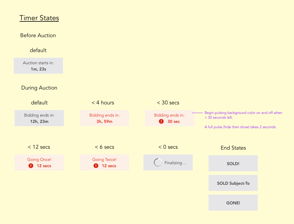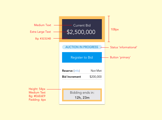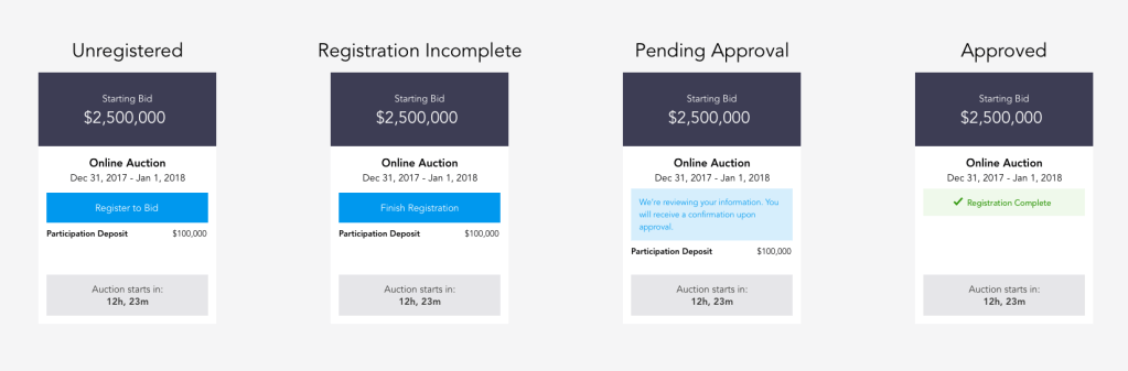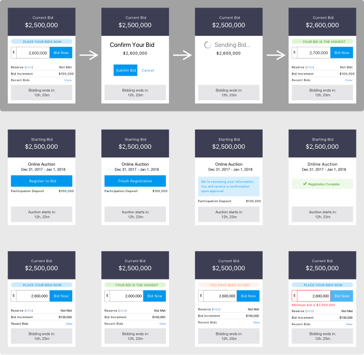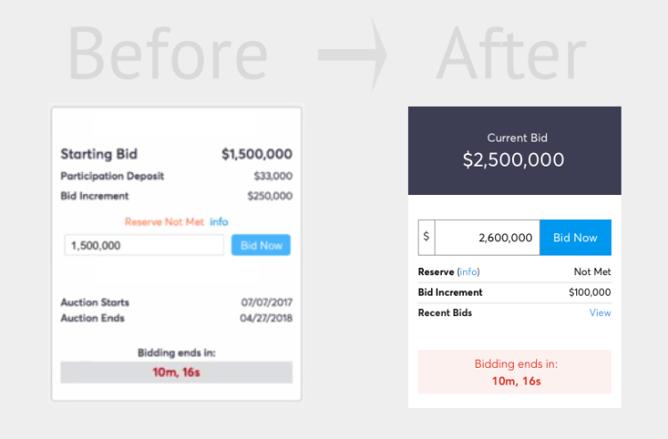 We chose and tested a design which contained the auction bidding within a “card” layout. This card was able to persist above the fold, fit well into the overall page design, and is inherently mobile-friendly.
