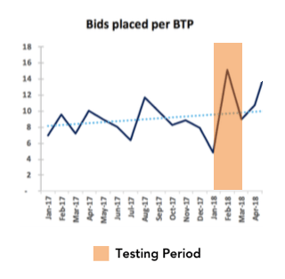 Increased bids placed with the new design. Caveat: Bids are a tricky metric, variable by the quality of assets up for sale at that time.