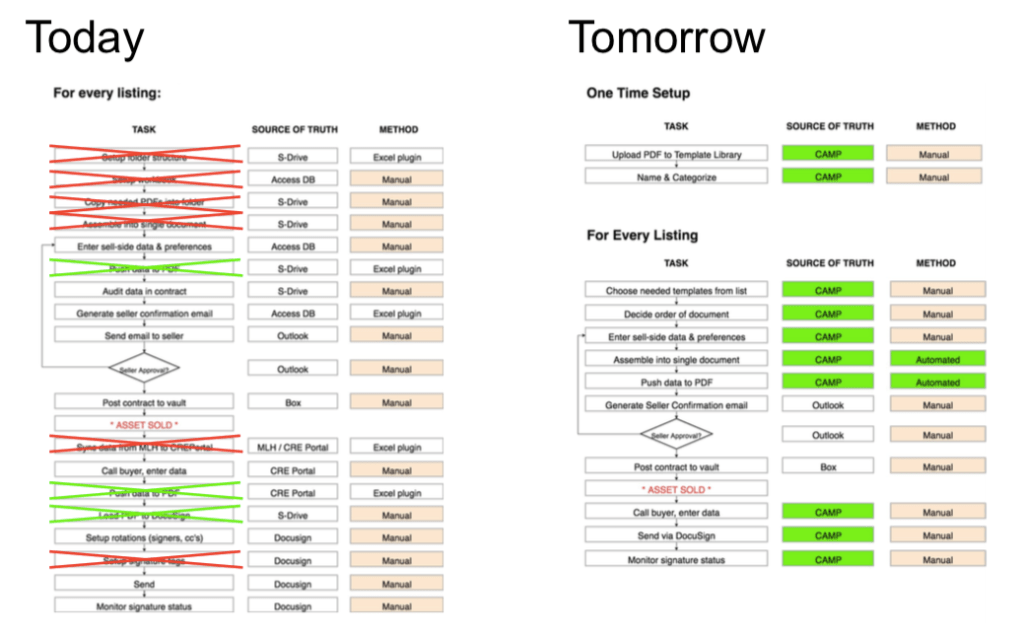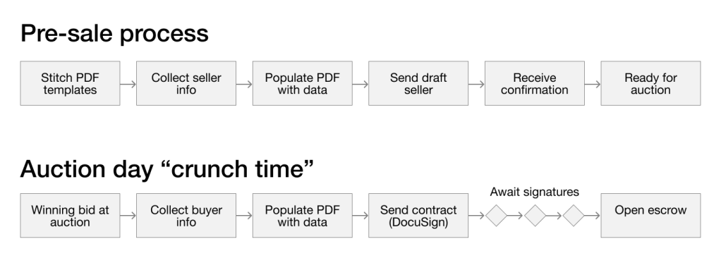 Creating and managing purchase contracts at Ten-X was inefficient, with a mix of offline tools, disconnected data sources, and redundant steps.
