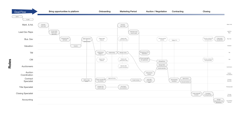 This diagram synthesizes how information moves through the organization through the stages of a transaction opportunity.