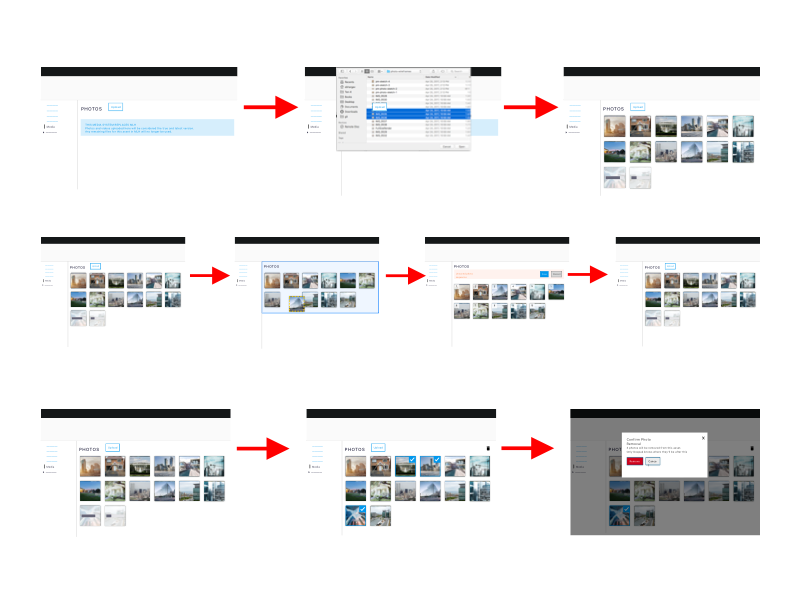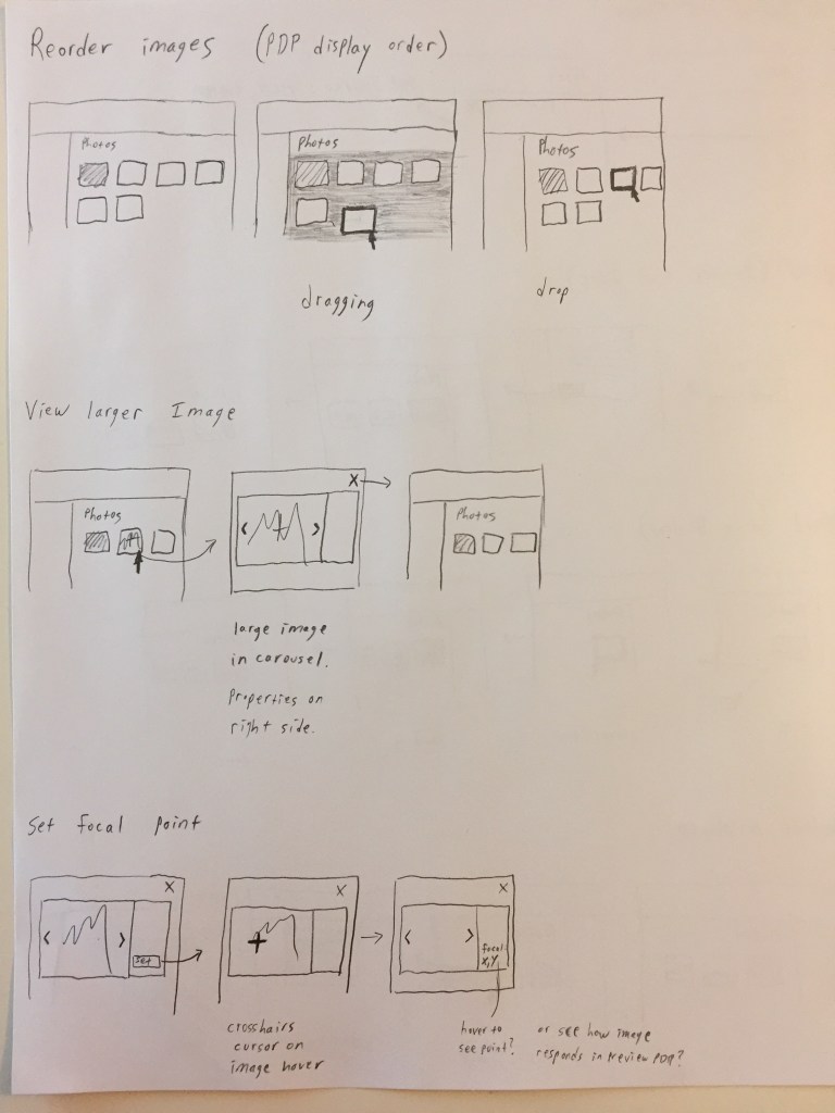 Defined user interaction model and screen mockups for photo upload, arrange, and remove. Leveraged team critiques and stakeholder feedback to iterate on design proposal.