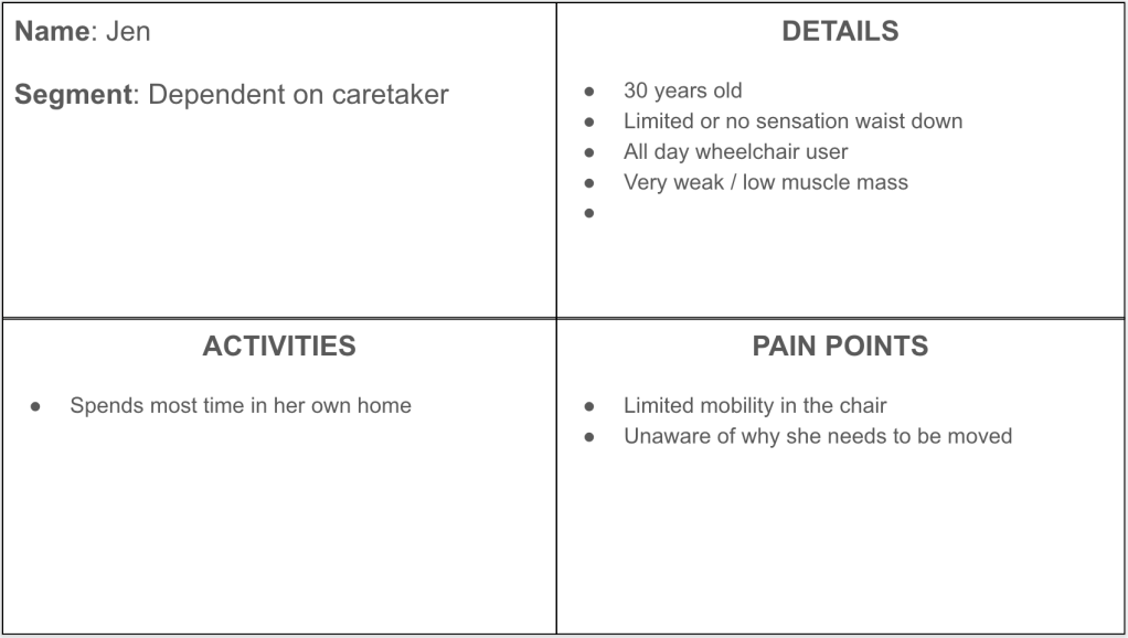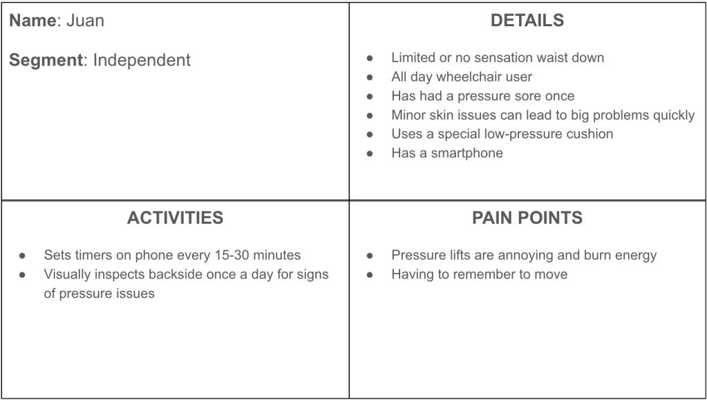 Developed personas to summarize learnings from the research. We identified two distinctly different types of problems: the independent and capable user versus the caretaker dependent user.